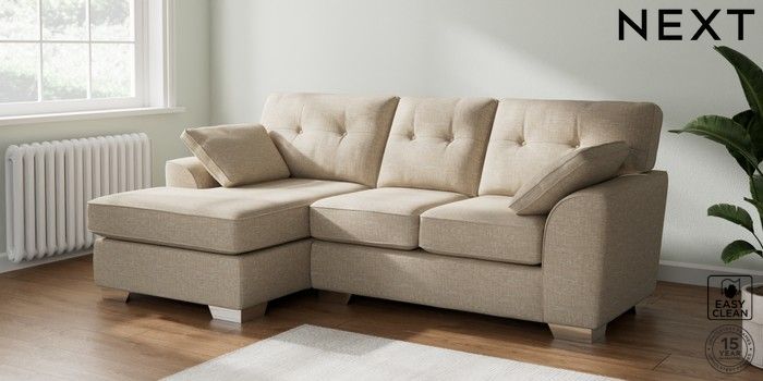 7.2.10 Buy Stamford Buttoned Back Small Sofa Chaise - Left Hand Boucle Weave Easy Clean Dark Natural Large Square Angle - Chrome Metal from the Laura Ashley online shop Click here to use our website with more accessibility support, for example screen readers