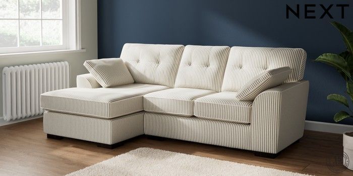 7.3.1 Buy Stamford Buttoned Back Small Sofa Chaise - Left Hand Chenille Stripe Moss Green Large Square Angle - Dark from the Laura Ashley online shop Click here to use our website with more accessibility support, for example screen readers