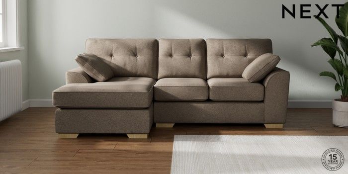 7.2.10 Buy Stamford Buttoned Back Small Sofa Chaise - Left Hand Chunky Weave Dark Natural Large Square Angle - Light from the Laura Ashley online shop Click here to use our website with more accessibility support, for example screen readers