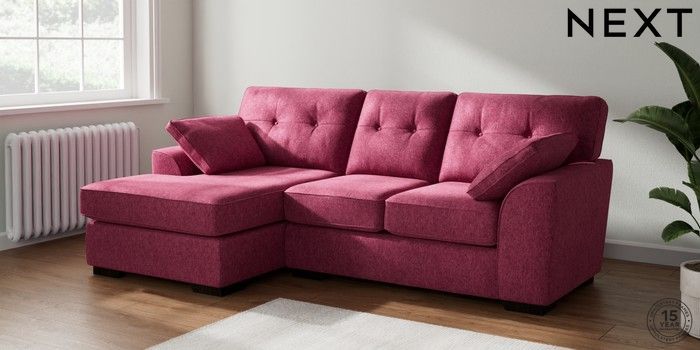 7.2.10 Buy Stamford Buttoned Back Small Sofa Chaise - Left Hand Cotswold Chenille Dark Raspberry Pink Large Square Angle - Dark from the Laura Ashley online shop Click here to use our website with more accessibility support, for example screen readers