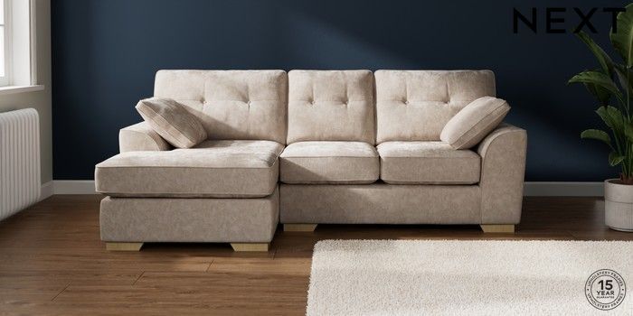 7.2.10 Buy Stamford Buttoned Back Small Sofa Chaise - Left Hand Distressed Velour Mid Natural Large Square Angle - Light from the Laura Ashley online shop Click here to use our website with more accessibility support, for example screen readers