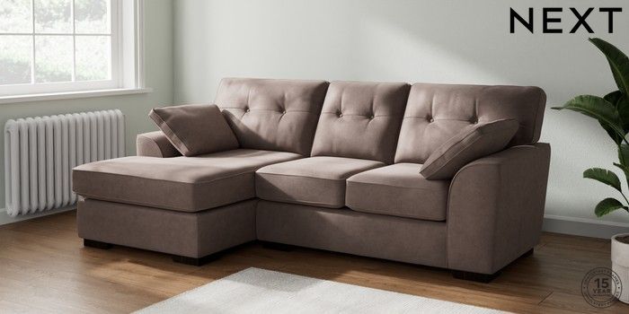 7.2.10 Buy Stamford Buttoned Back Small Sofa Chaise - Left Hand Luxe Chenille Mink Brown Large Square Angle - Dark from the Laura Ashley online shop Click here to use our website with more accessibility support, for example screen readers