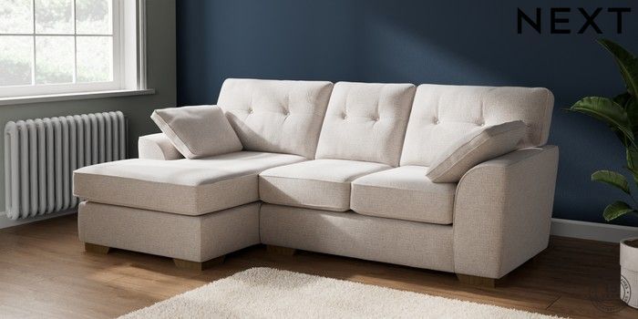 7.2.6 Buy Stamford Buttoned Back Small Sofa Chaise - Left Hand Multi Weave Oyster Large Square Angle - Mid from the Laura Ashley online shop Click here to use our website with more accessibility support, for example screen readers