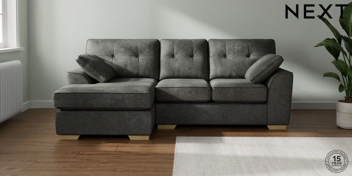 7.2.10 Buy Stamford Buttoned Back Small Sofa Chaise - Left Hand Plush Chenille Dark Grey Large Square Angle - Light from the Laura Ashley online shop Click here to use our website with more accessibility support, for example screen readers