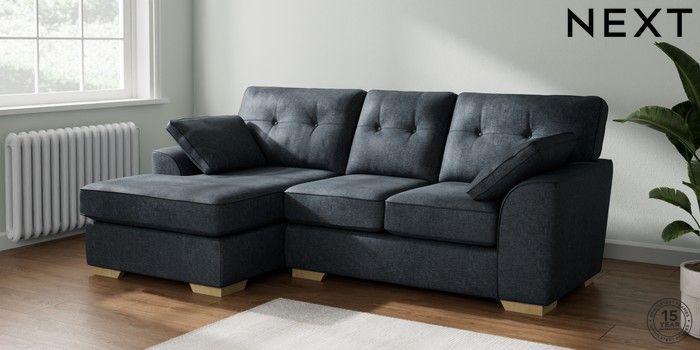 7.2.10 Buy Stamford Buttoned Back Small Sofa Chaise - Left Hand Plush Chenille Slate Blue Large Square Angle - Light from the Laura Ashley online shop Click here to use our website with more accessibility support, for example screen readers