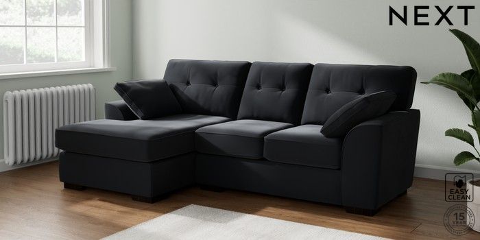 7.2.10 Buy Stamford Buttoned Back Small Sofa Chaise - Left Hand Plush Velvet Easy Clean Charcoal Grey Large Square Angle - Dark from the Laura Ashley online shop Click here to use our website with more accessibility support, for example screen readers