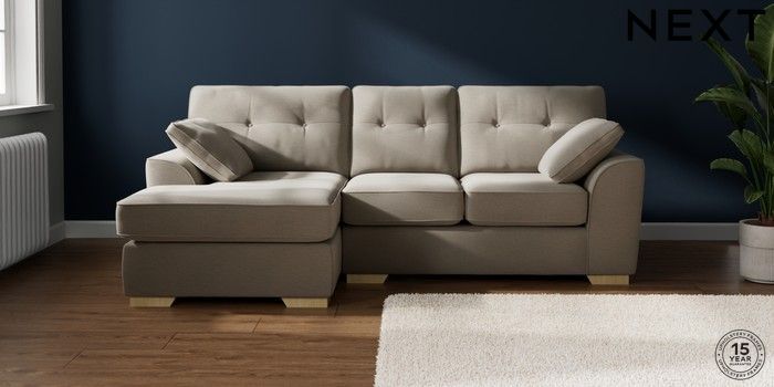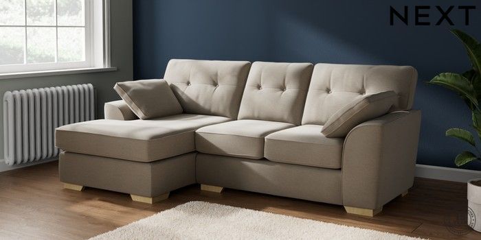 7.2.10 Buy Stamford Buttoned Back Small Sofa Chaise - Left Hand Ripple Chenille Light Natural Large Square Angle - Light from the Laura Ashley online shop Click here to use our website with more accessibility support, for example screen readers