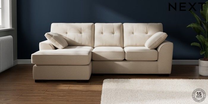7.2.10 Buy Stamford Buttoned Back Small Sofa Chaise - Left Hand Studio Chenille Oyster Large Square Angle - Dark from the Laura Ashley online shop Click here to use our website with more accessibility support, for example screen readers