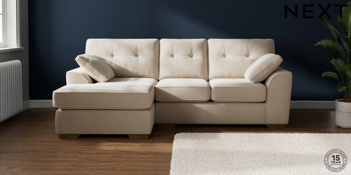 7.2.10 Buy Stamford Buttoned Back Small Sofa Chaise - Left Hand Studio Chenille Oyster Large Square Angle - Mid from the Laura Ashley online shop Click here to use our website with more accessibility support, for example screen readers