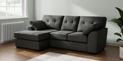 6.12.1 Buy Stamford Buttoned Back Small Sofa Chaise - Left Hand Tweedy Blend Easy Clean Charcoal Grey Large Square Angle - Dark from the Laura Ashley online shop Click here to use our website with more accessibility support, for example screen readers