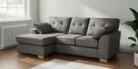 7.2.10 Buy Stamford Buttoned Back Small Sofa Chaise - Left Hand Tweedy Blend Easy Clean Dark Grey Large Square Angle - Brushed Brass from the Laura Ashley online shop Click here to use our website with more accessibility support, for example screen readers