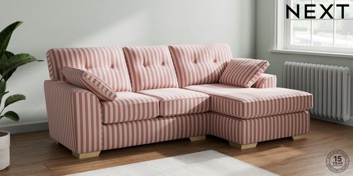 7.3.1 Buy Stamford Buttoned Back Small Sofa Chaise - Right Hand Bold Chenille Stripe Dark Pink Large Square Angle - Light from the Laura Ashley online shop Click here to use our website with more accessibility support, for example screen readers