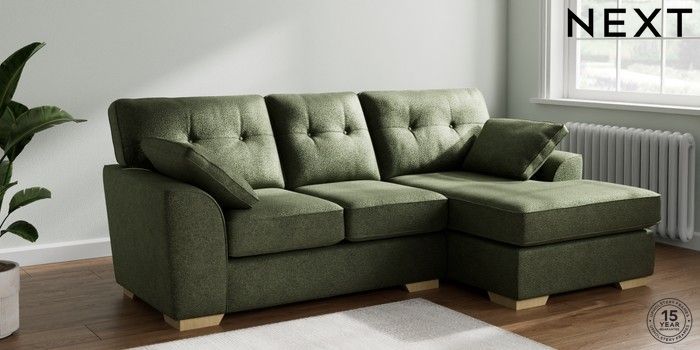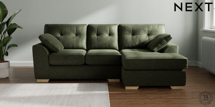 7.2.10 Buy Stamford Buttoned Back Small Sofa Chaise - Right Hand Boucle Chenille Dark Moss Green Large Square Angle - Light from the Laura Ashley online shop Click here to use our website with more accessibility support, for example screen readers