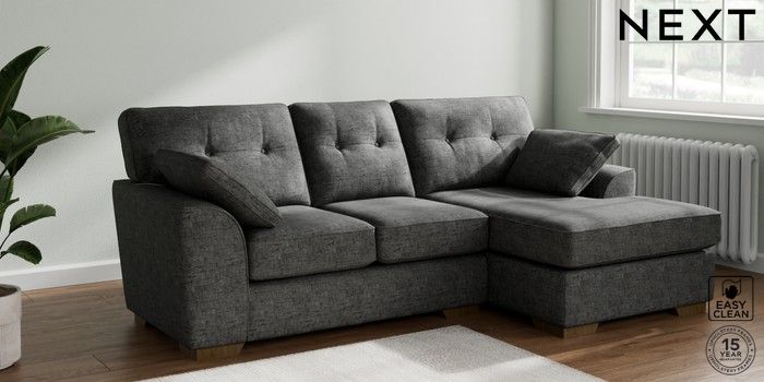 6.12.1 Buy Stamford Buttoned Back Small Sofa Chaise - Right Hand Boucle Weave Easy Clean Charcoal Grey Large Square Angle - Mid from the Laura Ashley online shop Click here to use our website with more accessibility support, for example screen readers