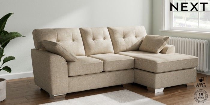 7.2.10 Buy Stamford Buttoned Back Small Sofa Chaise - Right Hand Boucle Weave Easy Clean Dark Natural Large Square Angle - Chrome Metal from the Laura Ashley online shop Click here to use our website with more accessibility support, for example screen readers