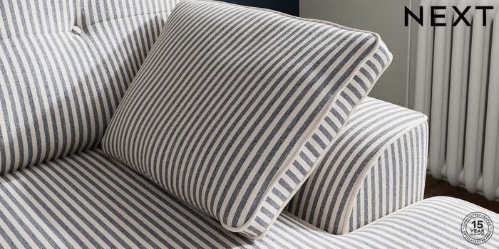 7.3.1 Buy Stamford Buttoned Back Small Sofa Chaise - Right Hand Chenille Stripe Slate Blue Large Square Angle - Dark from the Laura Ashley online shop Click here to use our website with more accessibility support, for example screen readers