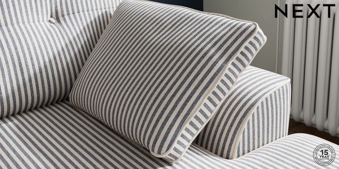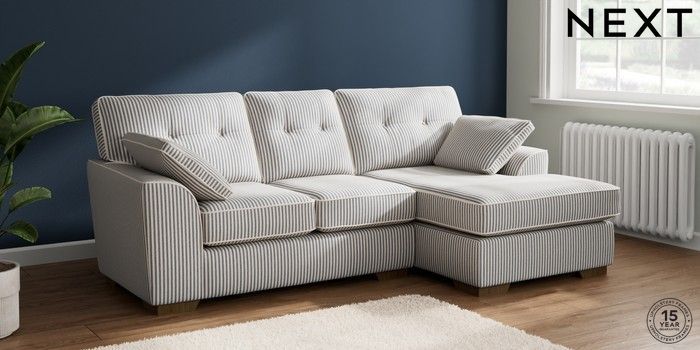 7.3.1 Buy Stamford Buttoned Back Small Sofa Chaise - Right Hand Chenille Stripe Slate Blue Large Square Angle - Mid from the Laura Ashley online shop Click here to use our website with more accessibility support, for example screen readers