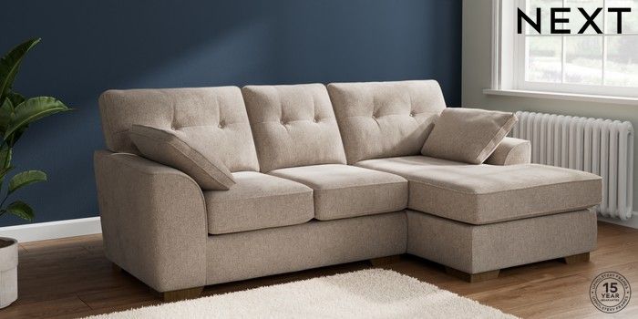 7.2.10 Buy Stamford Buttoned Back Small Sofa Chaise - Right Hand Chunky Chenille Light Dove Large Square Angle - Mid from the Laura Ashley online shop Click here to use our website with more accessibility support, for example screen readers