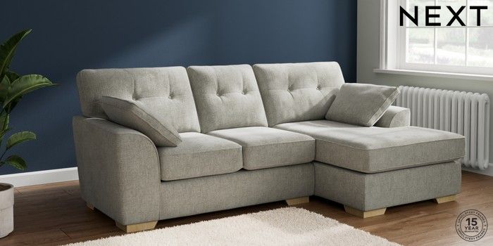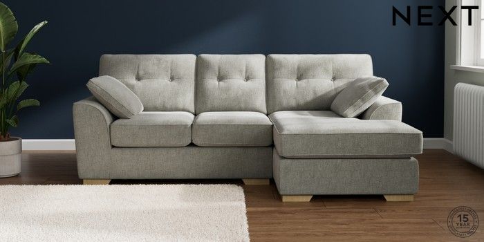 7.2.10 Buy Stamford Buttoned Back Small Sofa Chaise - Right Hand Chunky Chenille Light Grey Large Square Angle - Light from the Laura Ashley online shop Click here to use our website with more accessibility support, for example screen readers