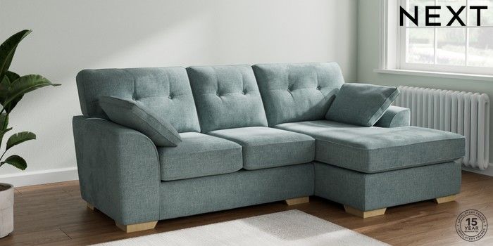7.2.10 Buy Stamford Buttoned Back Small Sofa Chaise - Right Hand Chunky Chenille Light Teal Green Large Square Angle - Light from the Laura Ashley online shop Click here to use our website with more accessibility support, for example screen readers