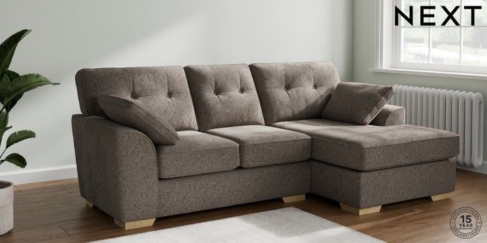 7.2.10 Buy Stamford Buttoned Back Small Sofa Chaise - Right Hand Chunky Chenille Mink Brown Large Square Angle - Light from the Laura Ashley online shop Click here to use our website with more accessibility support, for example screen readers