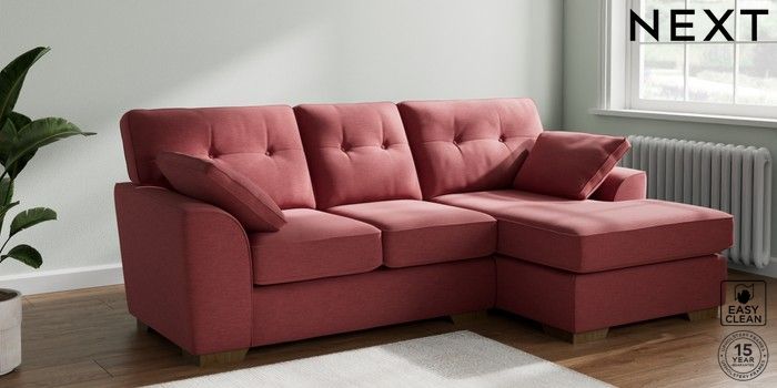 7.2.6 Buy Stamford Buttoned Back Small Sofa Chaise - Right Hand Fine Chenille Easy Clean Mid Pink Large Square Angle - Mid from the Laura Ashley online shop Click here to use our website with more accessibility support, for example screen readers