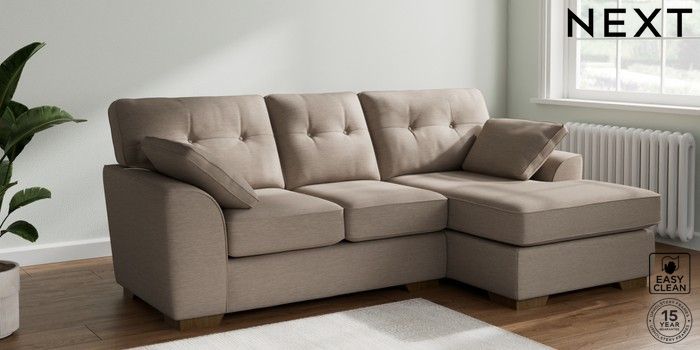 7.2.6 Buy Stamford Buttoned Back Small Sofa Chaise - Right Hand Fine Chenille Easy Clean Mid Taupe Brown Large Square Angle - Mid from the Laura Ashley online shop Click here to use our website with more accessibility support, for example screen readers