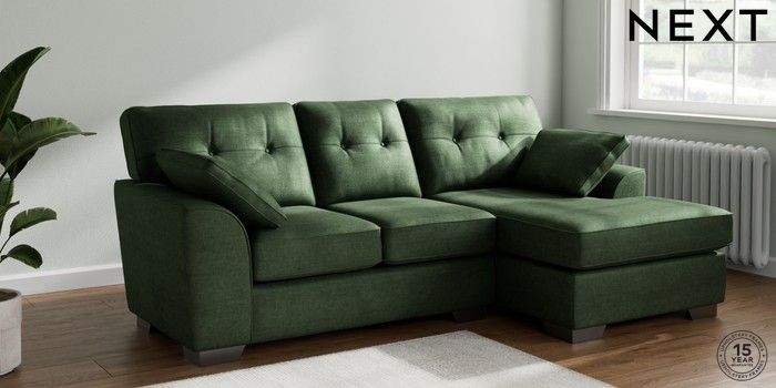 7.2.6 Buy Stamford Buttoned Back Small Sofa Chaise - Right Hand Luxe Chenille Dark Green Large Square Angle - Gunmetal from the Laura Ashley online shop Click here to use our website with more accessibility support, for example screen readers