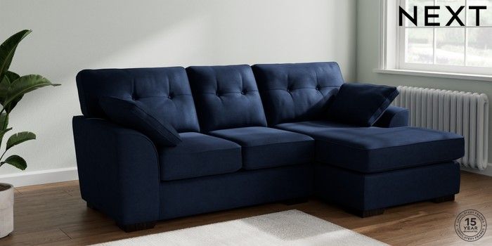 7.2.6 Buy Stamford Buttoned Back Small Sofa Chaise - Right Hand Luxe Chenille Navy Blue Large Square Angle - Dark from the Laura Ashley online shop Click here to use our website with more accessibility support, for example screen readers
