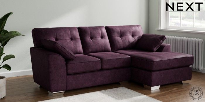 7.2.6 Buy Stamford Buttoned Back Small Sofa Chaise - Right Hand Plush Chenille Dark Plum Purple Large Square Angle - Chrome Metal from the Laura Ashley online shop Click here to use our website with more accessibility support, for example screen readers