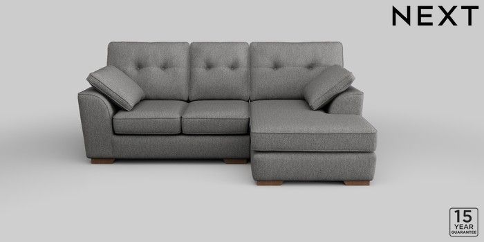 6.12.1 Buy Stamford Buttoned Back Small Sofa Chaise - Right Hand Tweedy Chenille Dark Grey Large Square Angle - Mid from the Laura Ashley online shop Click here to use our website with more accessibility support, for example screen readers