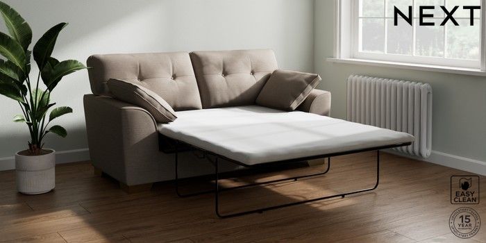 Bring timeless charm and ultimate family comfort to your home with the Stamford Buttoned sofa. Its large size and plush bolster cushions make it ideal for cosying up on. The "Firmer Sit" seat cushions provide exceptional support and durability, always returning to their tailored shape. These low-maintenance, reversible cushions are designed for lasting good looks. Personalise your Stamford Buttoned by picking from a vast selection of fabrics and various feet options. This range has a sofa bed. Sofa beds are a practical and comfortable addition to any home, big or small. Our sofa beds are pull-out beds containing a separate 6cm occasional foam mattress. This pull-out mechanism is concealed underneath the main cushions. We have sofa beds across multiple ranges, but they all are 120cm in width and 180cm in length, so we suggest a double duvet and a double flat sheet to dress your sofa bed.