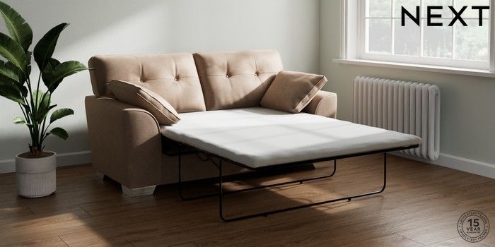 Bring timeless charm and ultimate family comfort to your home with the Stamford Buttoned sofa. Its large size and plush bolster cushions make it ideal for cosying up on. The "Firmer Sit" seat cushions provide exceptional support and durability, always returning to their tailored shape. These low-maintenance, reversible cushions are designed for lasting good looks. Personalise your Stamford Buttoned by picking from a vast selection of fabrics and various feet options. This range has a sofa bed. Sofa beds are a practical and comfortable addition to any home, big or small. Our sofa beds are pull-out beds containing a separate 6cm occasional foam mattress. This pull-out mechanism is concealed underneath the main cushions. We have sofa beds across multiple ranges, but they all are 120cm in width and 180cm in length, so we suggest a double duvet and a double flat sheet to dress your sofa bed.