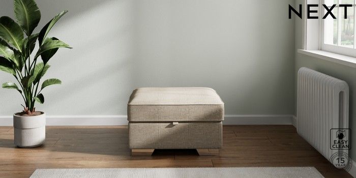7.2.6 Buy Stamford Buttoned Back Storage Footstool Boucle Weave Easy Clean Dark Natural Square Angle - Chrome Metal from the Laura Ashley online shop Click here to use our website with more accessibility support, for example screen readers
