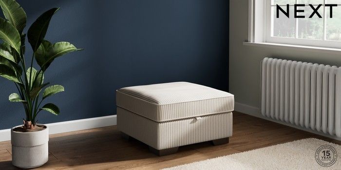 7.3.1 Buy Stamford Buttoned Back Storage Footstool Chenille Stripe Natural Square Angle - Gunmetal from the Laura Ashley online shop Click here to use our website with more accessibility support, for example screen readers