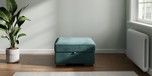 6.12.13 Buy Stamford Buttoned Back Storage Footstool Chunky Chenille Mid Teal Green Square Angle - Gunmetal from the Laura Ashley online shop Click here to use our website with more accessibility support, for example screen readers
