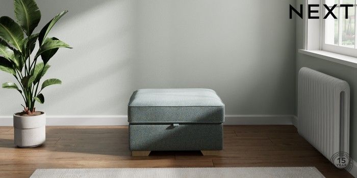 7.2.6 Buy Stamford Buttoned Back Storage Footstool Chunky Marl Mid Blue Square Angle - Light from the Laura Ashley online shop Click here to use our website with more accessibility support, for example screen readers
