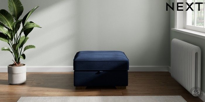 7.2.6 Buy Stamford Buttoned Back Storage Footstool Luxe Chenille Navy Blue Square Angle - Mid from the Laura Ashley online shop Click here to use our website with more accessibility support, for example screen readers