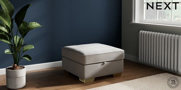 7.2.10 Buy Stamford Buttoned Back Storage Footstool Natural Mix Light Grey Square Angle - Brushed Brass from the Laura Ashley online shop Click here to use our website with more accessibility support, for example screen readers