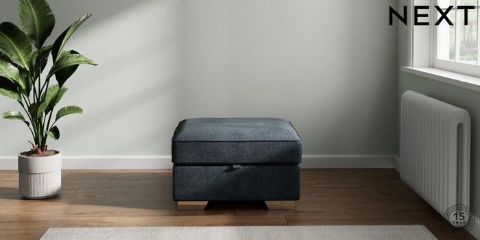 7.2.6 Buy Stamford Buttoned Back Storage Footstool Plush Chenille Slate Blue Square Angle - Chrome Metal from the Laura Ashley online shop Click here to use our website with more accessibility support, for example screen readers