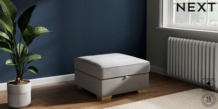 7.2.10 Buy Stamford Buttoned Back Storage Footstool Tweedy Blend Easy Clean Light Silver Grey Square Angle - Light from the Laura Ashley online shop Click here to use our website with more accessibility support, for example screen readers