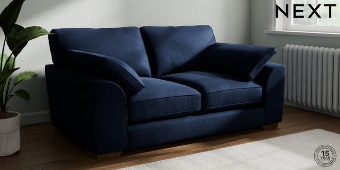 7.3.1 Buy Stamford Grand Relaxed Sit 2 Seater Sofa Luxe Chenille Navy Blue Large Square Angle - Mid from the Laura Ashley online shop Click here to use our website with more accessibility support, for example screen readers