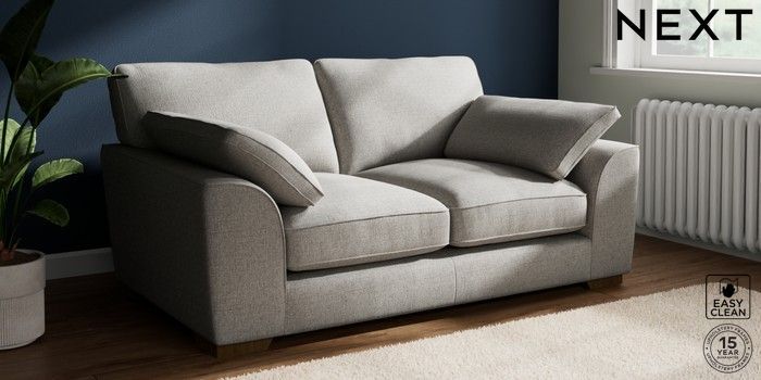 7.3.1 Buy Stamford Grand Relaxed Sit 2 Seater Sofa Woven Chenille Easy Clean Light Grey Large Square Angle - Mid from the Laura Ashley online shop Click here to use our website with more accessibility support, for example screen readers