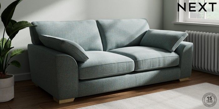 7.3.1 Buy Stamford Grand Relaxed Sit 3 Seater Sofa Chunky Marl Mid Blue Large Square Angle - Light from the Laura Ashley online shop Click here to use our website with more accessibility support, for example screen readers