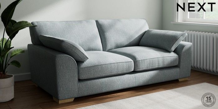 7.3.1 Buy Stamford Grand Relaxed Sit 3 Seater Sofa Chunky Weave Mid Blue Large Square Angle - Light from the Laura Ashley online shop Click here to use our website with more accessibility support, for example screen readers