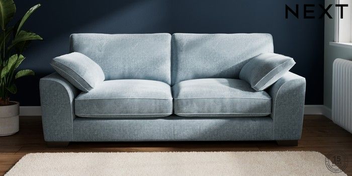 7.2.6 Buy Stamford Grand Relaxed Sit 3 Seater Sofa Plush Chenille Light Blue Large Square Angle - Gunmetal from the Laura Ashley online shop Click here to use our website with more accessibility support, for example screen readers