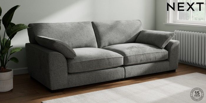 7.3.1 Buy Stamford Grand Relaxed Sit 4 Seater Sofa Chunky Chenille Dark Grey Large Square Angle - Dark from the Laura Ashley online shop
