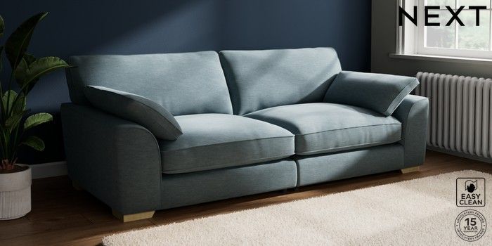 7.3.1 Buy Stamford Grand Relaxed Sit 4 Seater Sofa Fine Chenille Easy Clean Mid Blue Large Square Angle - Light from the Laura Ashley online shop Click here to use our website with more accessibility support, for example screen readers