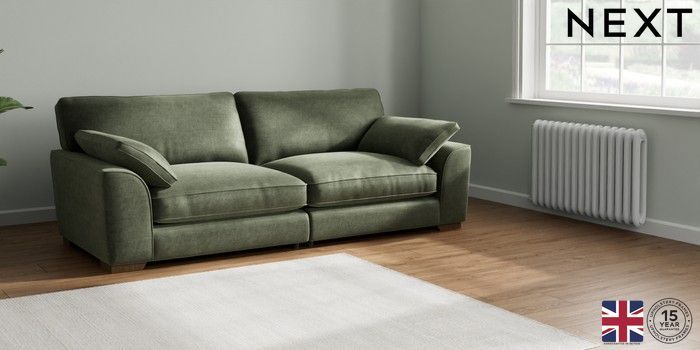 6.12.1 Buy Stamford Grand Relaxed Sit 4 Seater Sofa Luxe Chenille Mid Green Large Square Angle - Mid from the Laura Ashley online shop Click here to use our website with more accessibility support, for example screen readers