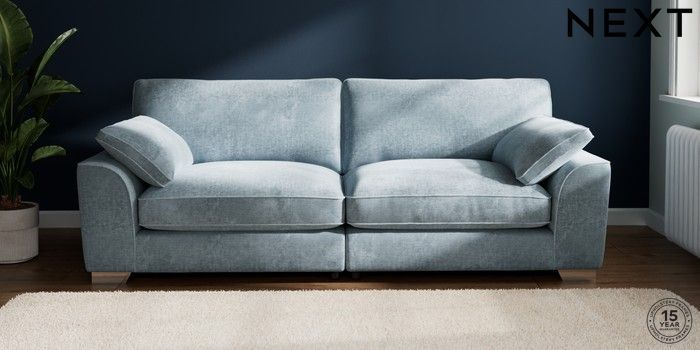 7.2.6 Buy Stamford Grand Relaxed Sit 4 Seater Sofa Plush Chenille Light Blue Large Square Angle - Chrome Metal from the Laura Ashley online shop Click here to use our website with more accessibility support, for example screen readers